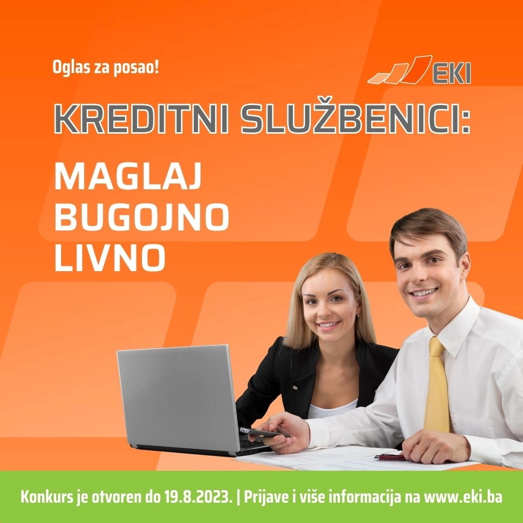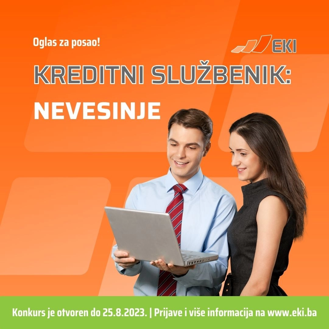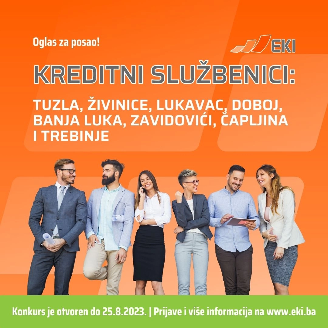 Za Tuzlu, Živinice, Lukavac, Doboj, Banja Luku, Zavidoviće, Čapljinu i Trebinje tražimo: Kreditne službenik za Mikrokreditno društvo EKI